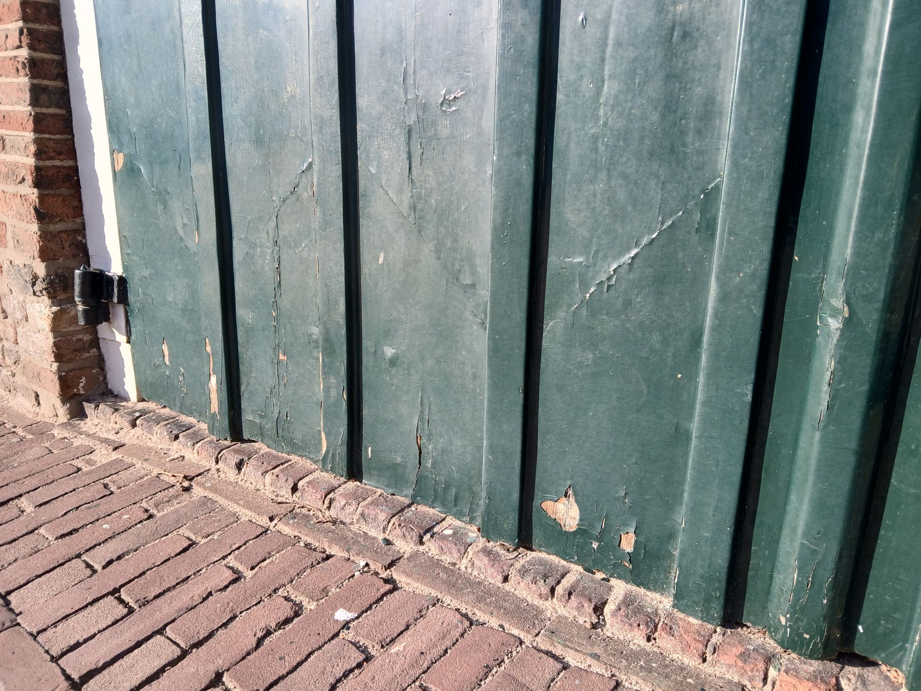 Een voorbeeld van inspectiewerk van de Monumentenwacht. Wat je ziet is de onderzijde van een oude deur, welke in het verleden al eens is hersteld.