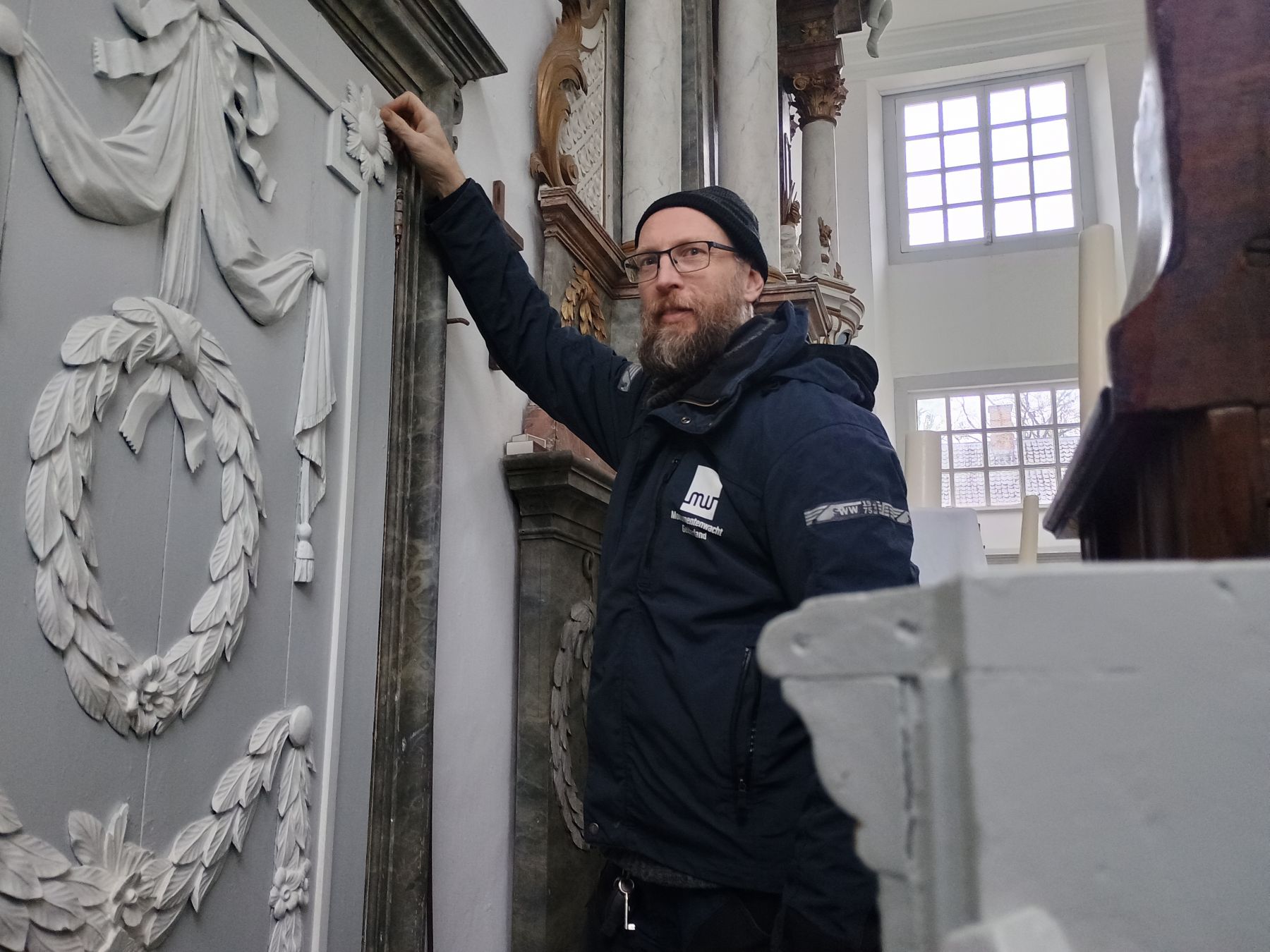 De samenwerking tussen Monumentenwacht Gelderland en het NRC en NCE is bijzonder te noemen. “Het past helemaal bij het gedachtegoed van de Monumentenwacht”, legt hij uit. “Wij zien in de praktijk veel schade. Soms door ouderdom of verzakking, maar soms ook door ondeskundig werk. Die praktijkkennis willen we terugbrengen naar de cursisten en studenten, zodat zij leren hoe het wél moet.” Het is een waardevolle wisselwerking. De schadebeelden die Wilfred overdag tegenkomt, zoals roestend ijzer in metselwerk, verkeerd toegepaste beglazing of ondoordachte ingrepen, vormen later concrete lesvoorbeelden. Zijn netwerk in de regio versterkt dat nog eens. Even de VVV bellen om een toren in Amersfoort te bezoeken, toegang te regelen tot een kapconstructie in Nijkerk of met studenten schadebeelden bekijken in de kapel van het klooster in Amersfoort.